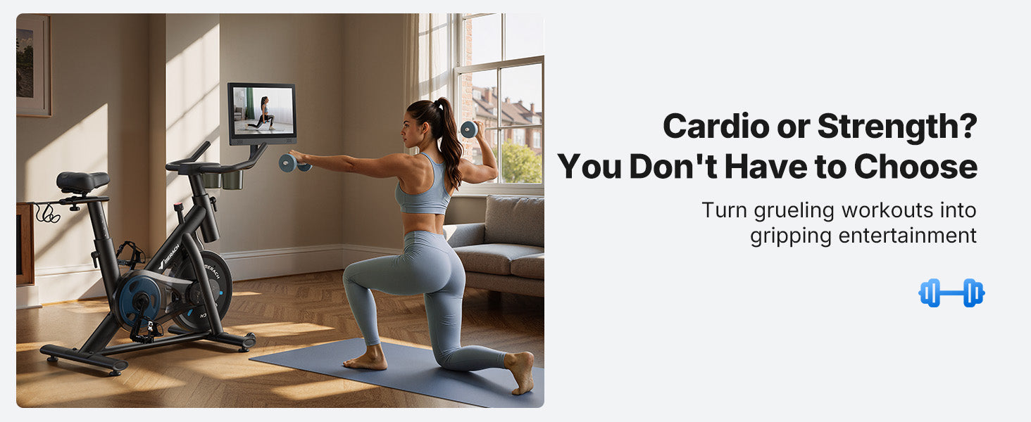 The S26 Aura Magnetic Exercise Bike combines smooth magnetic resistance with a rotating 15.6" HD screen for versatile home training. Designed for quiet performance, flexible workouts, and easy fitness tracking in shared living spaces.