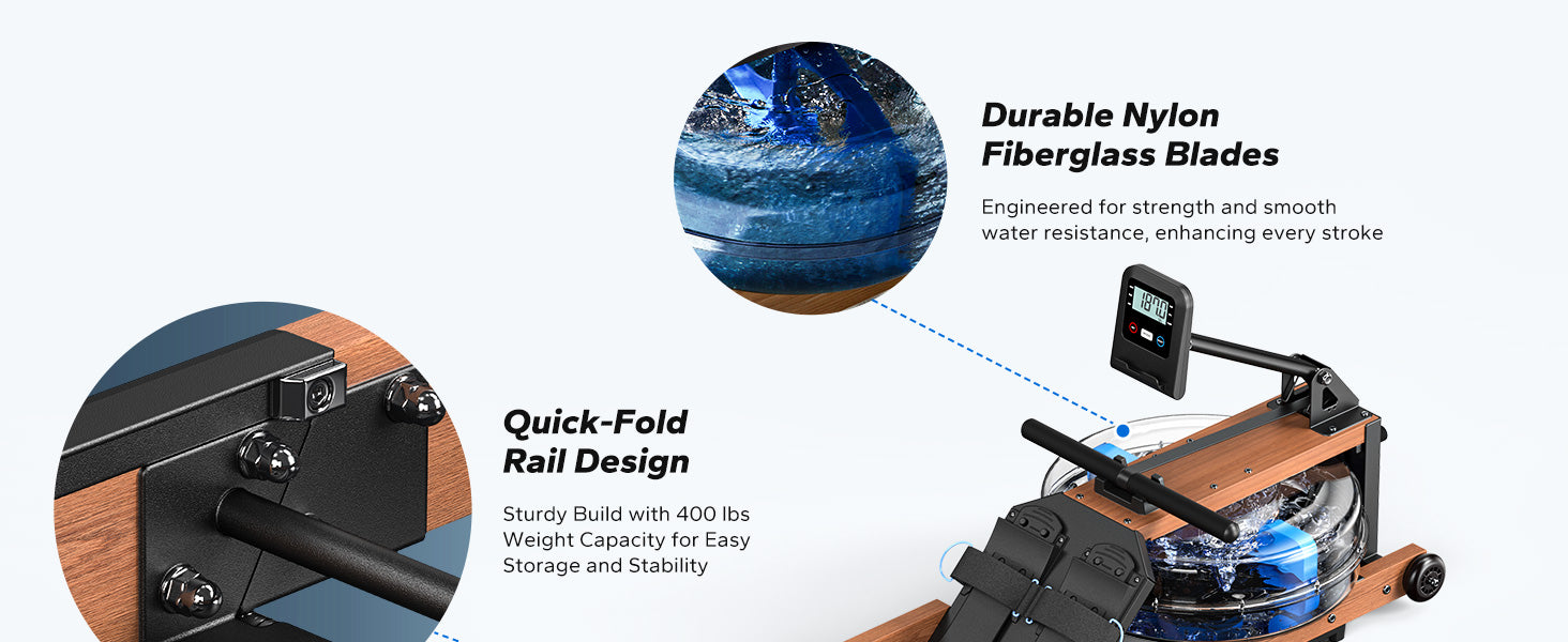 R28 Wood Foldable Water Rowing Machine with 180kg Capacity